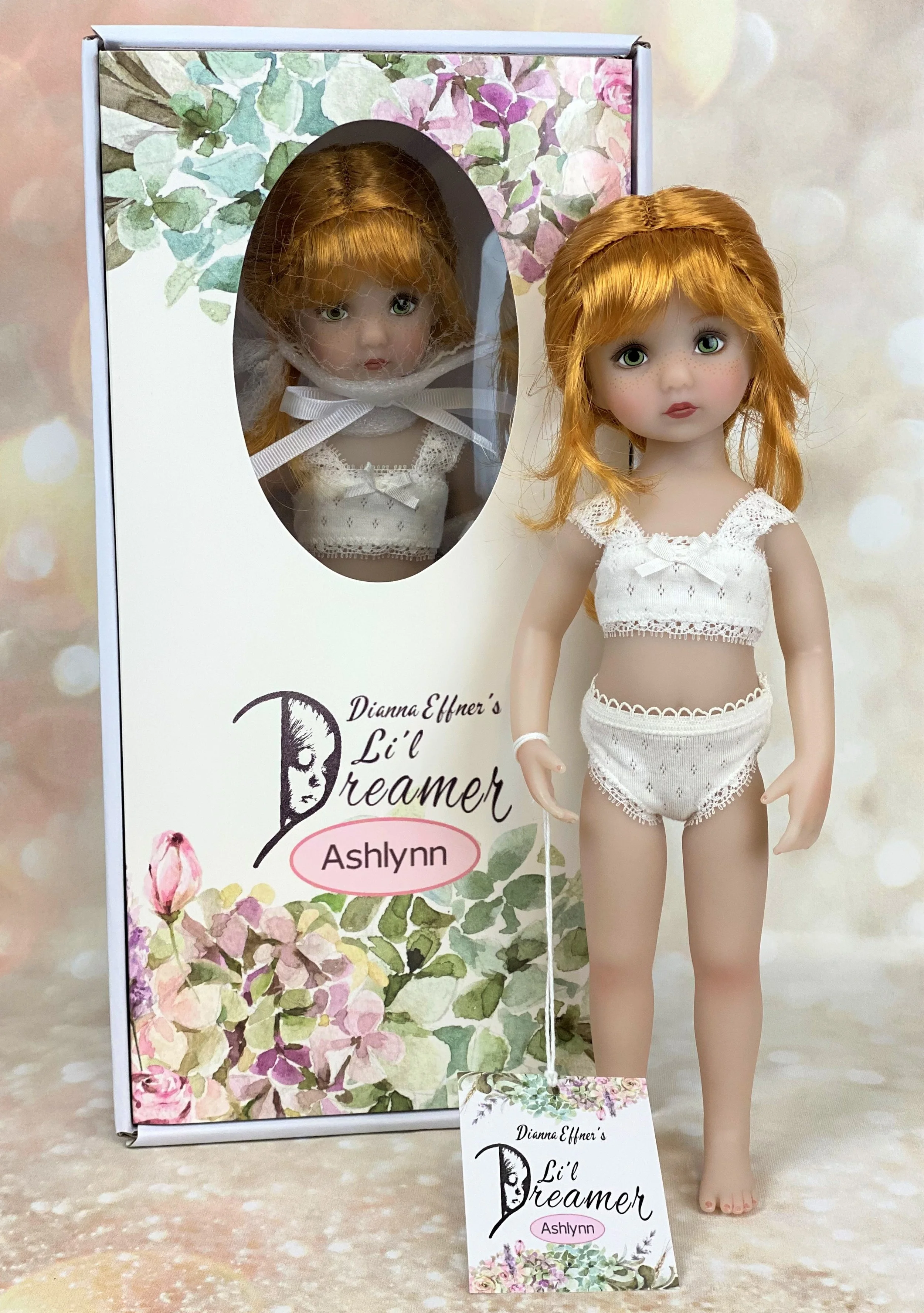 Ashlynn is the second in the Li'l Dreamer vinyl doll series. Sculpted by Dianna Effner, she is approximately 11" tall and makes a perfect little sister for Little Darlings.